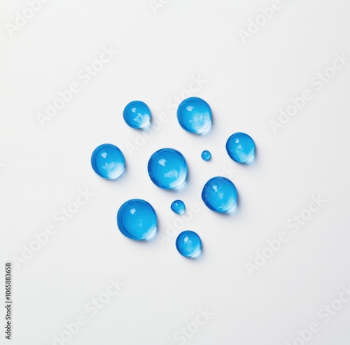 © Ishika, Fototapeta premium Transparent blue water droplets on a white background
