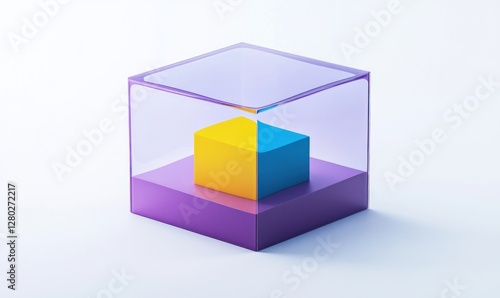 © setiyo, Obraz premium Transparent cube showcasing a smaller, two-toned cube inside.