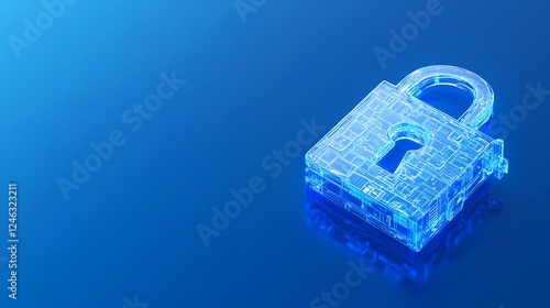 Fototapeta premium Transparent Digital Lock on Blue Background Representing Cyber Security and Data Protection Technologies