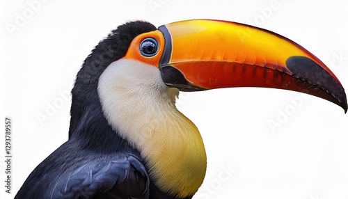 © netsay, Fototapeta premium Transparent Digital Portrait of a Vibrant Toucan Perched Amidst Exotic Greenery, Showcasing Striking Plumage and Detailed Textures against a Bold Background, Perfect for Artwork, Home Decor, or