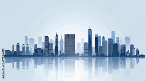© AVADA, Naklejka premium Transparent glass material urban skyline reflection illustration