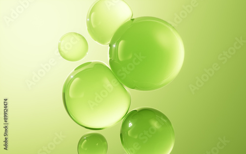 © Vink Fan, Fototapeta premium Transparent green bubbles background, 3d rendering.
