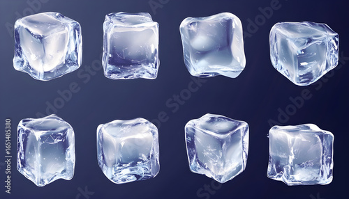 Obraz premium Transparent ice cubes with crystal clear surfaces and realistic frozen texture for beverage industry presentations