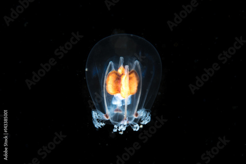 Fototapeta premium Transparent jellyfish in the dark