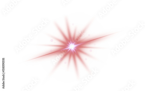Fototapeta premium Transparent light flare effect. Glowing neon-pink light star ray. Radiant...
