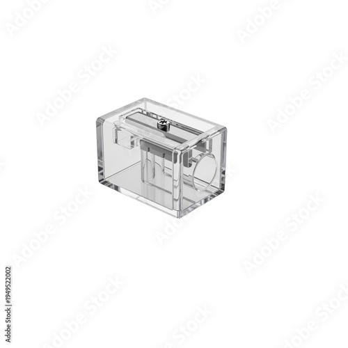 © Sayeda, Obraz premium Transparent plastic pencil sharpener simple office supply for school and art isolated on white backg