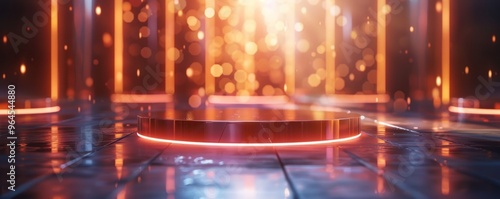 © peppastocker, Obraz premium Transparent podium with a floating effect, highlighted by bright, focused lights.