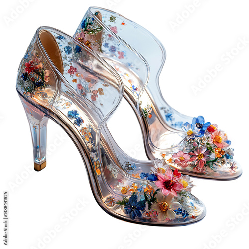 Obraz premium Transparent PVC Heels with Embedded Flowers Isolated on Transparent Background