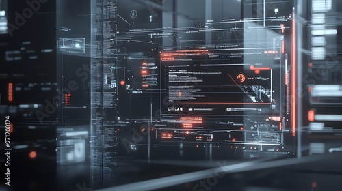 Obraz premium Transparent tech interfaces layered over a muted backdrop with clean lines