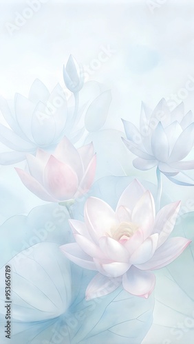© OLGA S, Fototapeta premium transparent watercolor greeting card background with lotus flowers