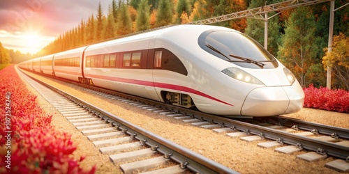 © Natalia, Naklejka premium Transport novelty. The high-speed train is designed according to the standards of modern technologies.