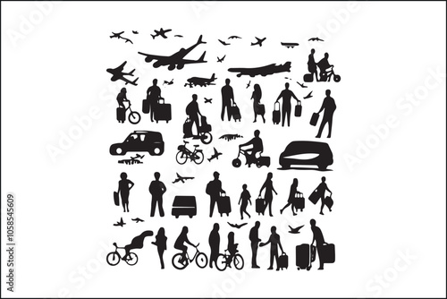 Fototapeta premium Transport Silhouette Vector | Vehicles and Travel IconsTransportation...