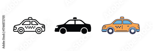 Fototapeta premium transportation icon pack taxi three styles simple line silhouette and...