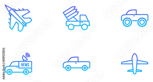 © Microstocke, Naklejka premium Transportation line Gradient icon pictogram symbol visual illustration Set
