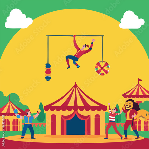 Obraz premium Trapeze artists swing high with high quality detailed illustration creative...