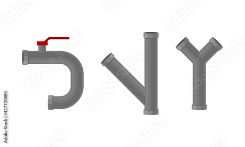 Fototapeta premium Traps as Shaped Pipe and Plumbing Fixture with Red Valve Vector Set
