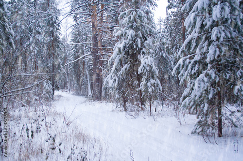 Fototapeta premium Trasa narciarska w lesie