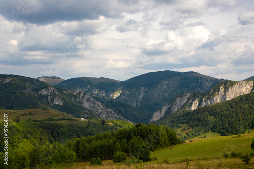 © sebi_2569, Naklejka premium Trascau - Apuseni mountains landscape seen from the Trans Apuseana road in Romania
