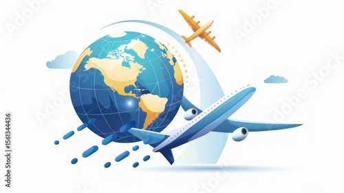 © Chandara, Fototapeta premium Travel agency logo with airplane and globe