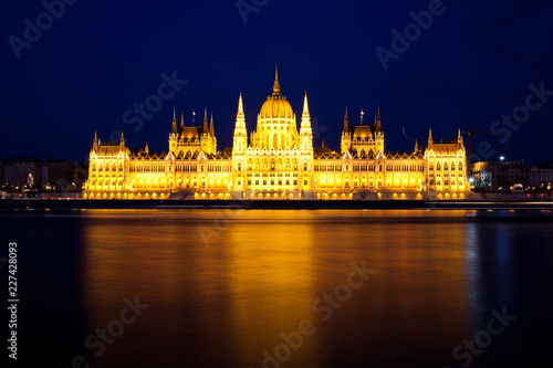 © Melinda Nagy, Fototapeta premium travel and european tourism concept. Budapest, Hungary. Hungarian Parliament Building over Danube River illuminated at night.