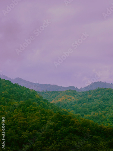 Fototapeta premium Travel and landscape in summer concept from panorama view of tropical forest with layer of mountain and cloudy background