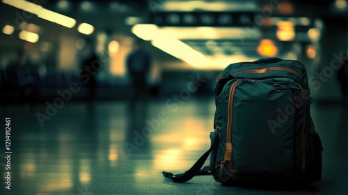 © Thanos, Obraz premium Travel Backpack Awaits Departure in Modern Airport