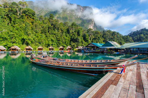 © Southtownboy Studio, Naklejka premium Travel by small boats, Ratchaprapha dam area in Surat Thani province, Thailand.