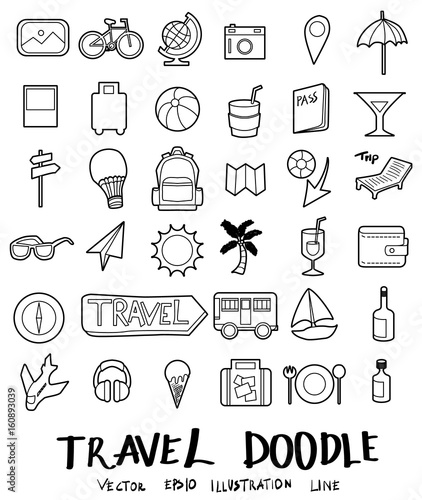 © veekicl, Naklejka premium Travel Doodle line icon vector set eps10
