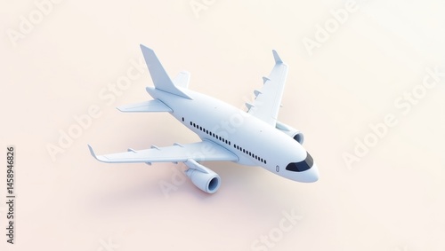 © Premium Illustration, Fototapeta premium Travel Esim. Modern white passenger airplane flying in pastel sky, business travel concept, aviation industry, clean background, transportation, technology image for presentations or marketing design