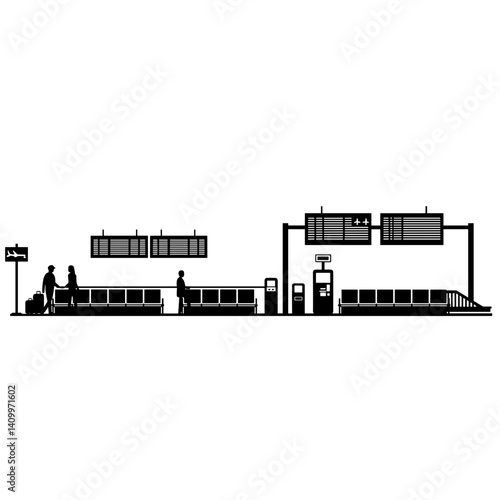 Obraz premium Travel Illustration of a Train Station with Passengers