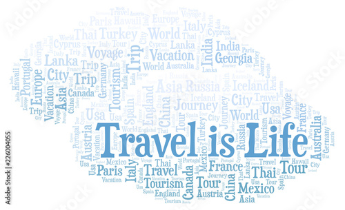 © sharafmaksumov, Obraz premium Travel Is Life word cloud.