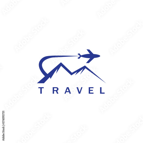 © rokhmatulloh, Fototapeta premium travel logo illustration mountain and airplane color design vector template