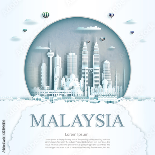 © Painterstock, Obraz premium Travel Malaysia monument in Kuala Lumpur city modern building in circle.
