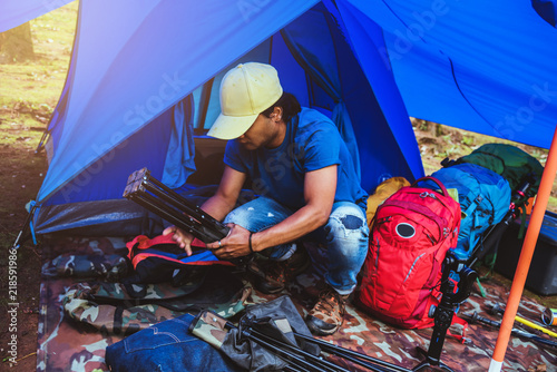 © last19, Obraz premium travel relax in the holiday. camping on the Mountain. Thailand