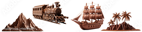 Obraz premium Travel shaped chocolate png cut out element set, transparent background