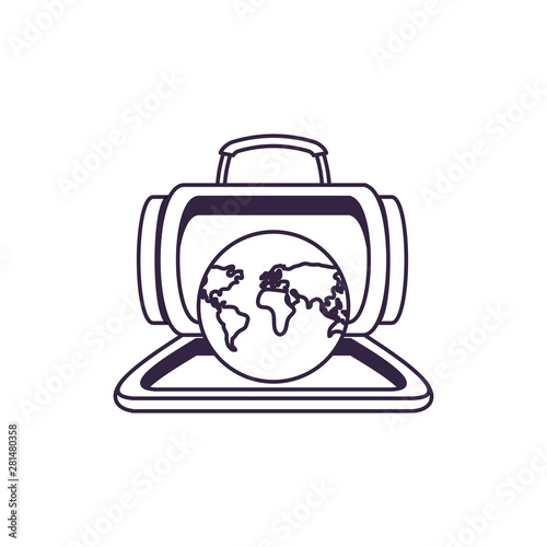 © djvstock, Fototapeta premium travel suitcase equipment with world planet