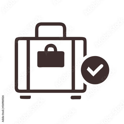 Obraz premium Travel suitcase icon with checkmark on a simple background