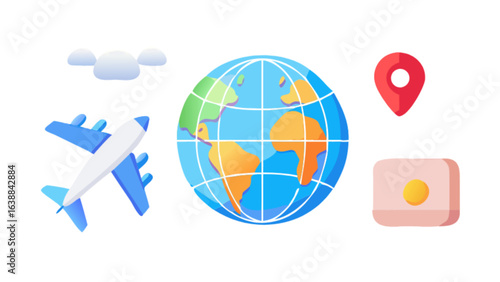 Fototapeta premium Travel the world with plane and globe for international tourism and vacation planning destination adventure