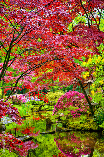 Fototapeta premium Travel Through the Netherlands. Amazing Japanese Garden with Asian Zen...