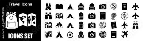© PHOTRIX, Naklejka premium Travel & Tourism Icon Set – Vacation & Adventure Symbols