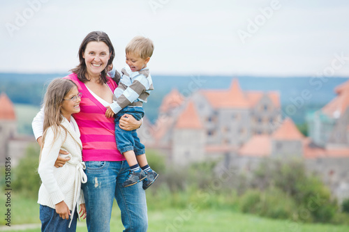 © Max Topchii, Fototapeta premium Travelers. Young mother with her two children