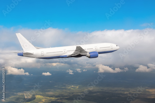 © aapsky, Fototapeta premium Traveling by plane flying at altitude thick clouds