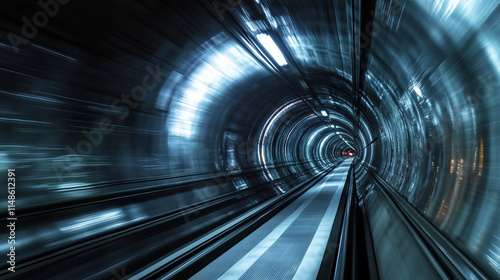 Fototapeta premium Traveling through a futuristic tunnel withlowing lights and reflections.