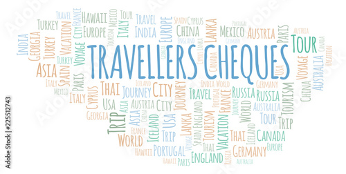 © sharafmaksumov, Fototapeta premium Travellers Cheques word cloud.