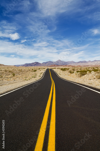 Naklejka premium Travelling down the road in desert