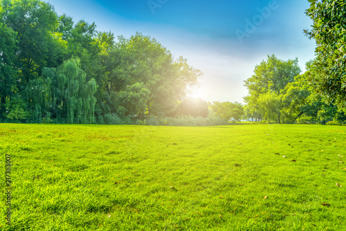 © zhouyilu, Obraz premium Trawa i zielone lasy w parku