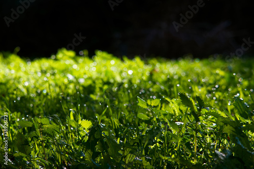 Obraz premium trawa krople woda tło zieleń