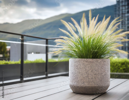 Obraz premium Trawa ozdobna w donicy na tarasie
