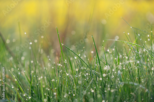 © Elżbieta Kaps, Fototapeta premium Trawa w rosie na łące wiosną