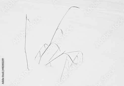 © Adam, Naklejka premium Trawy wystające ze śniegu.